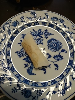 以上が「春巻き」の工程ですが、ここでお弁当用に小さいサイズの物を作ります。大体晩御飯用に8本包むとして、残りの春巻きの皮2枚で合計8本程のお弁当用ミニ春巻きを作ります。