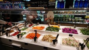 ワンコイン(500円)で好きなだけボウルに好きな野菜を盛れるサラダバー、新鮮野菜のスムージー等、生鮮食材が買えるエリアです。