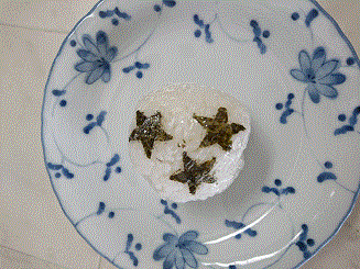 ノリでなくても、ご飯をケチャップライスにして薄焼き卵を星型に型抜きしてもいいですし(その際は、パッチンと型をくり抜くものではなく、クッキーの型等を使う方が簡単です。)見本のおにぎりは分かりやすいように白米ですが、混ぜご飯でもふりかけごはんでもなんでも可愛くなります。